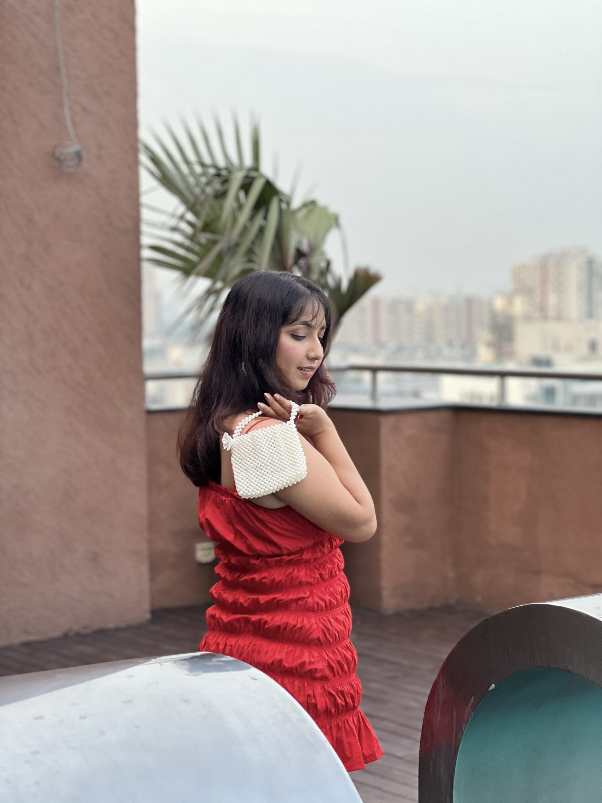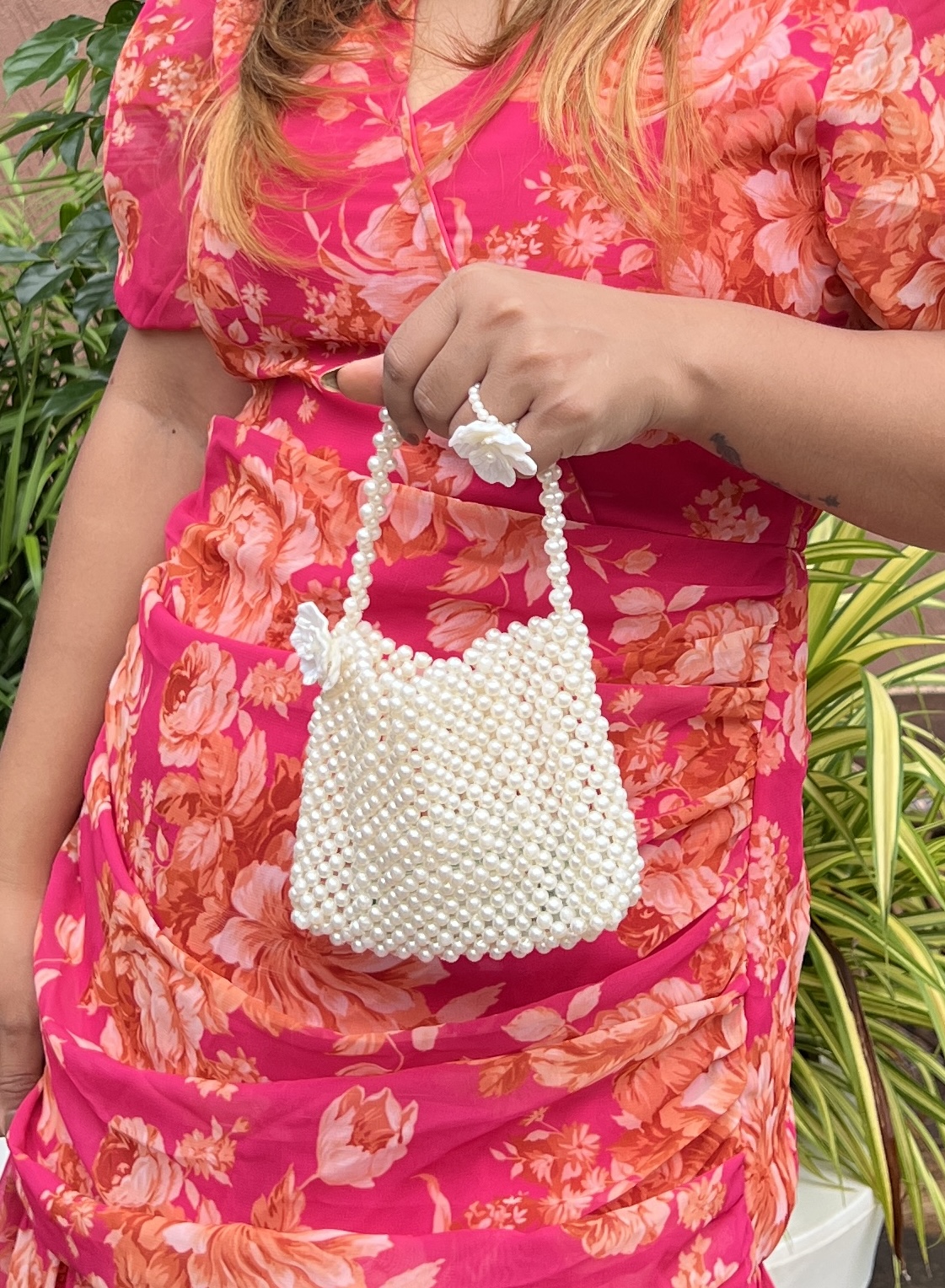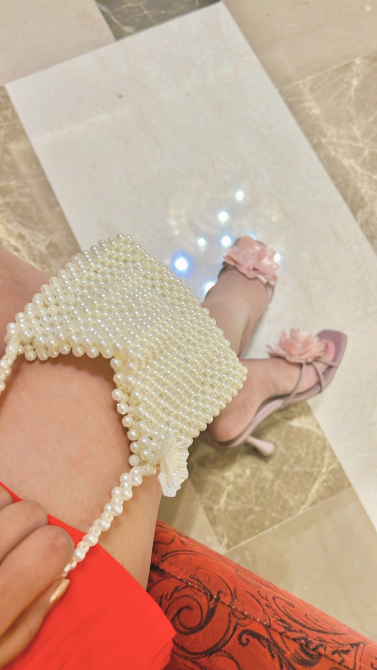Elegant and timeless, this pearl beaded bag is all about soft luxury. Its delicate design makes it a standout piece for special occasions.