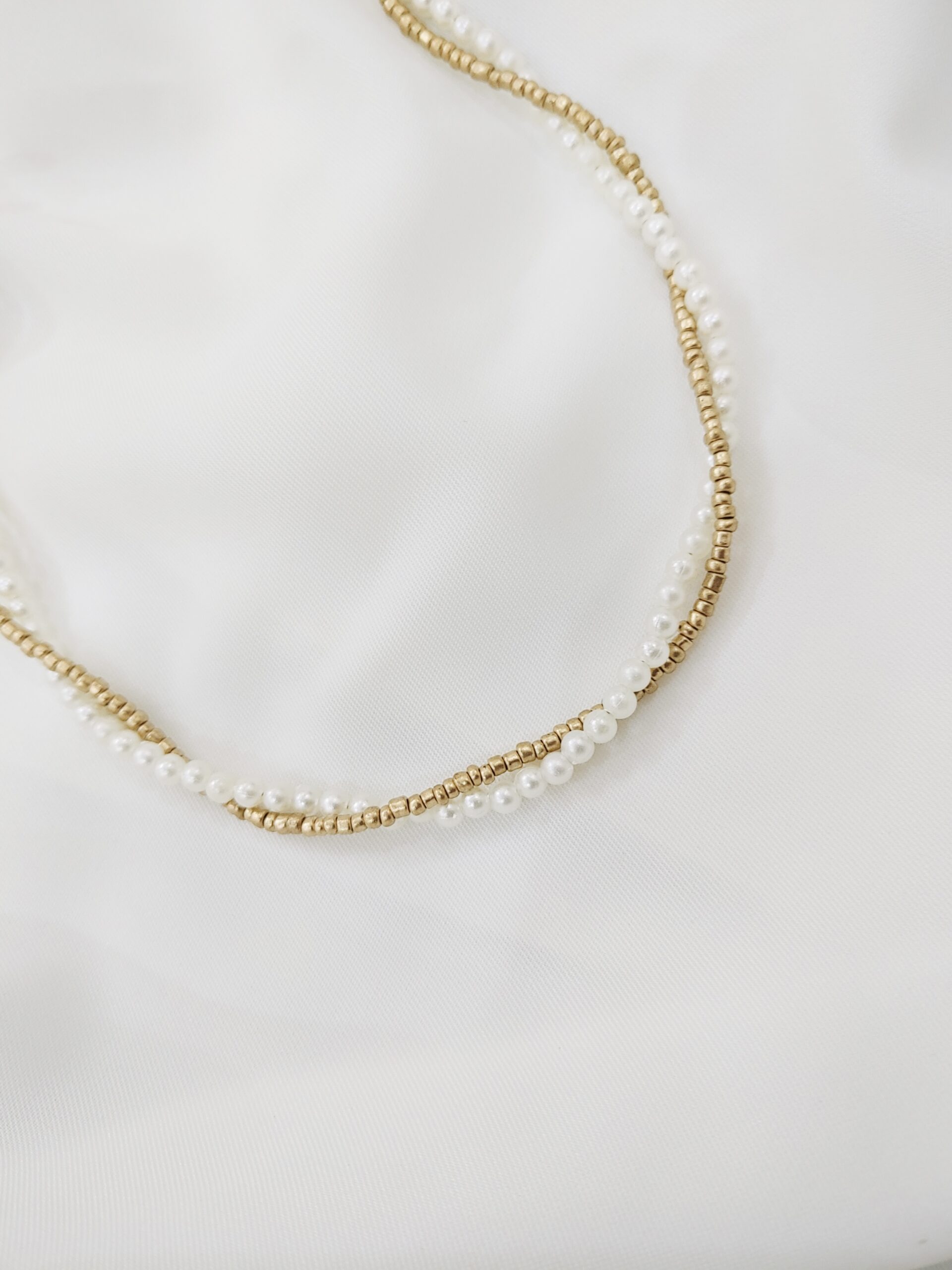 A timeless blend of elegance and minimal charm. This pearl and gold beaded necklace adds a subtle sophistication to any look.
